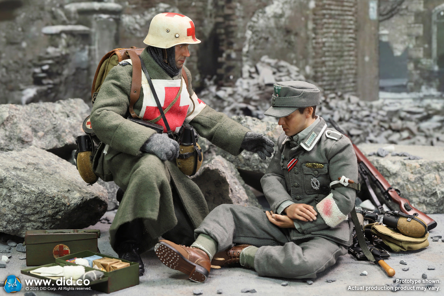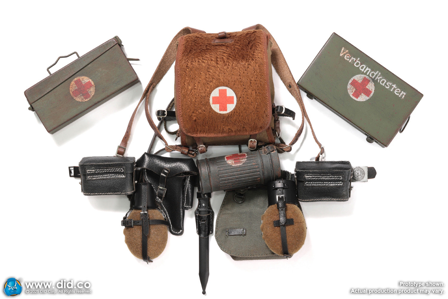 - Beautifully-made accessories include medic tornister, medic pouches, gas mask with canister, red cross ammo box and so on.