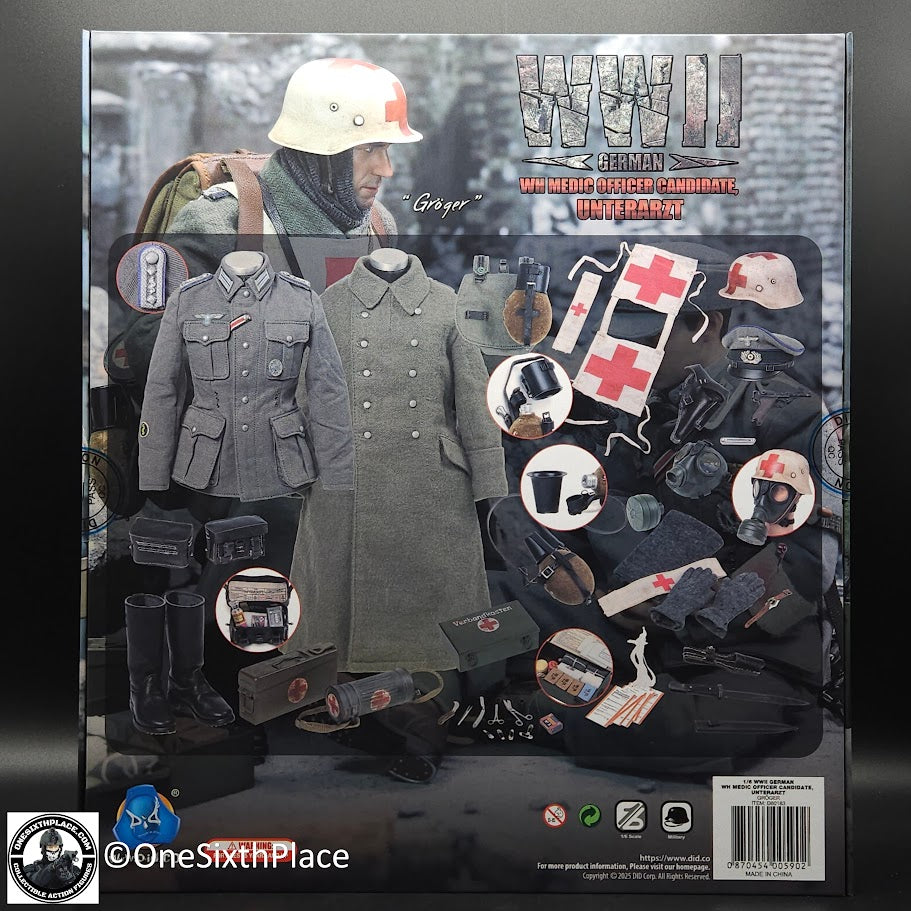 In stock and ready to ship is a brand new 1/6 scale WWII German Medic Officer Candidate, Unterazt- Groger" 12" boxed action figure by Dragon in Dreams (D80183). This is a highly detailed adult collectible 12" tall action figure, similar to one-sixth (1:6) scale figures by Hasbro G.I. Joe, Dragon Models Ltd, Blue Box International, Hot Toys, Soldier Story, Dam Toys, and Easy and Simple in excellent sealed new-in-box, never-removed-from-box condition.