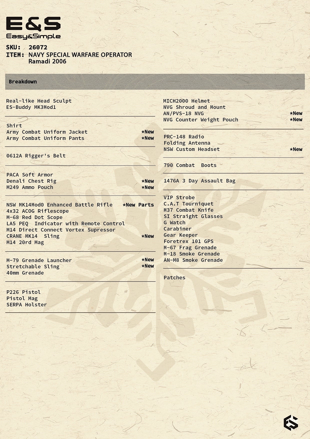 1:6 scale Easy & Simple 26072 NAVY SPECIAL WARFARE OPERATOR Ramadi 2006 (PRE-ORDER)