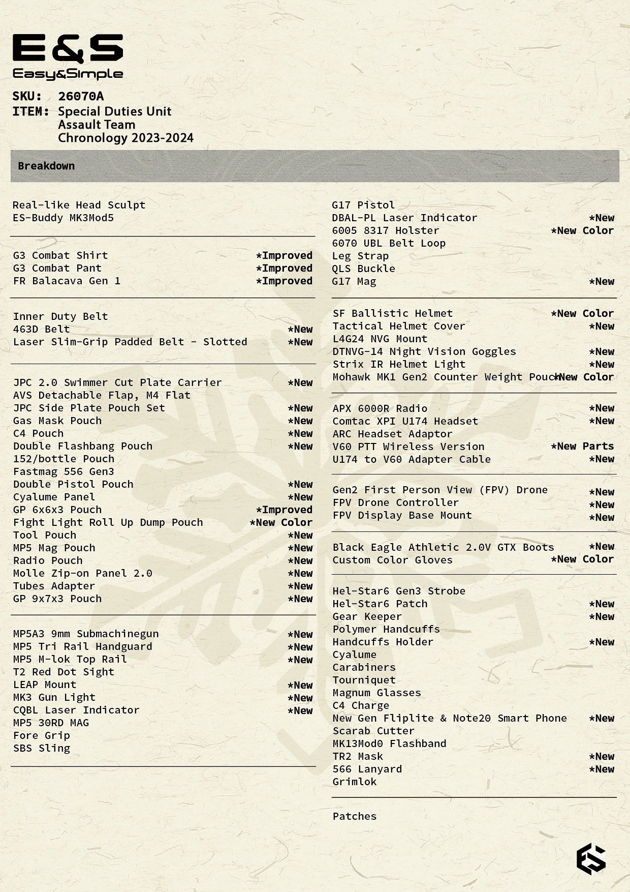 Easy & Simple 26070A Special Duties Unit Assault Team Chronology 2023-2024