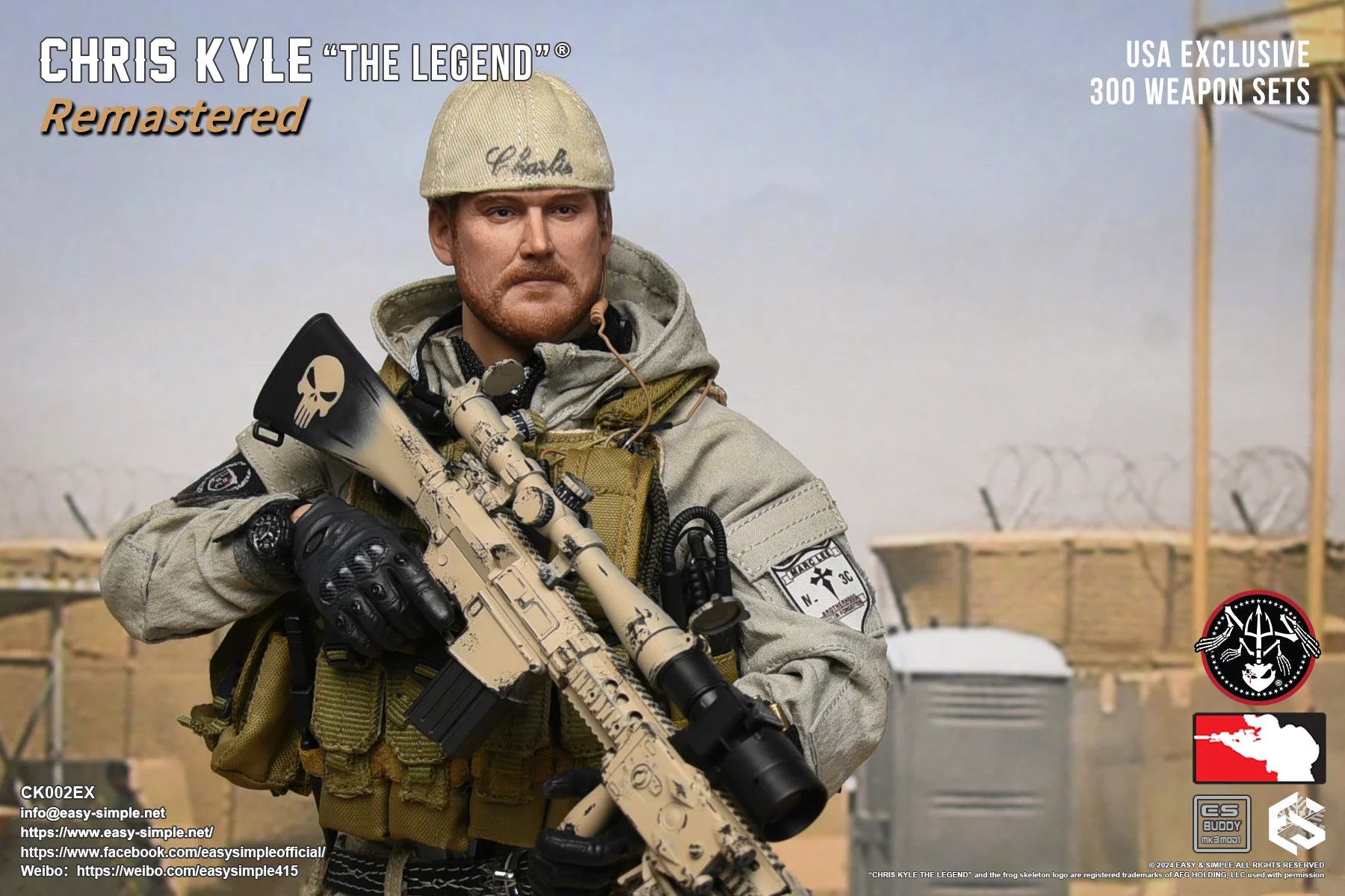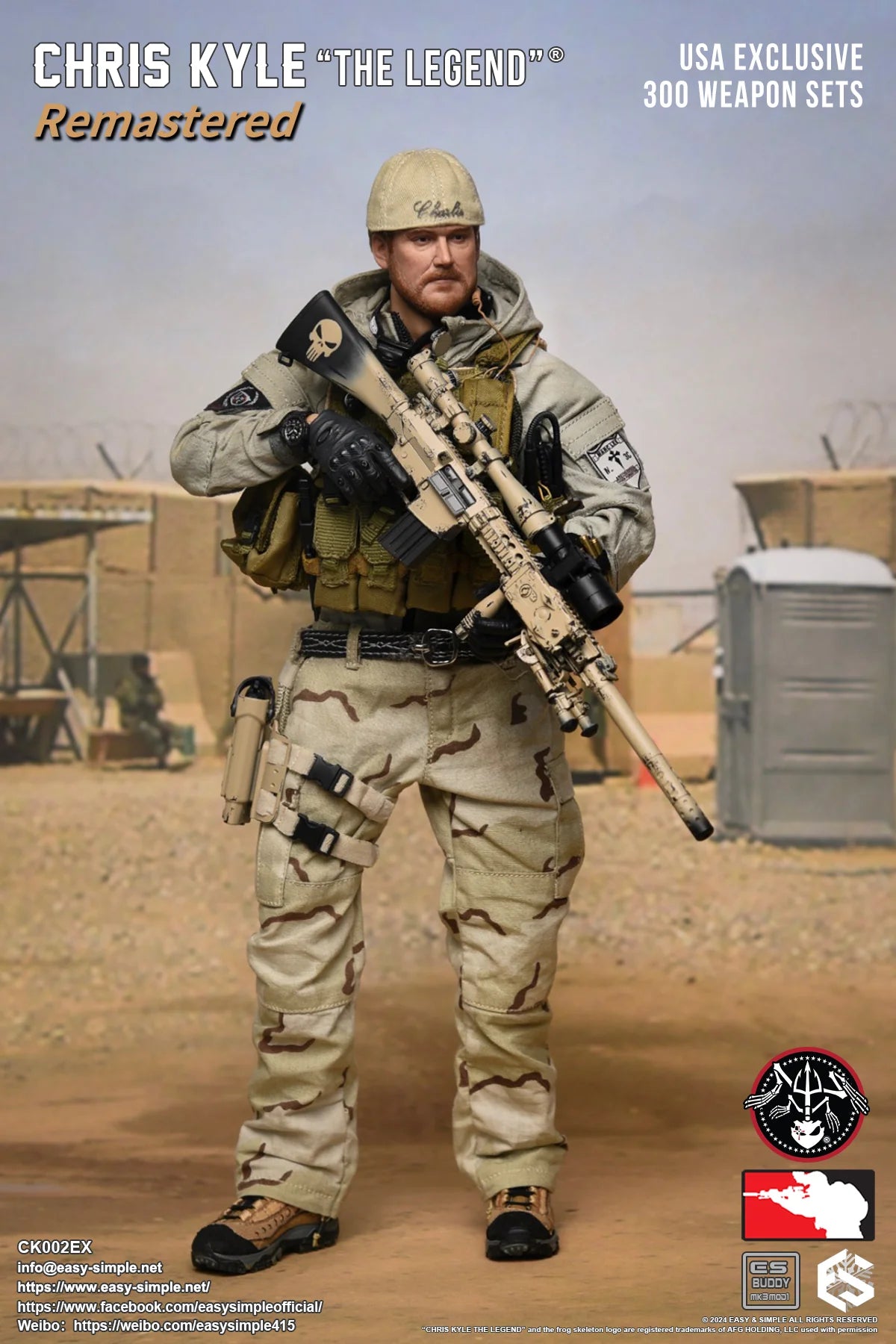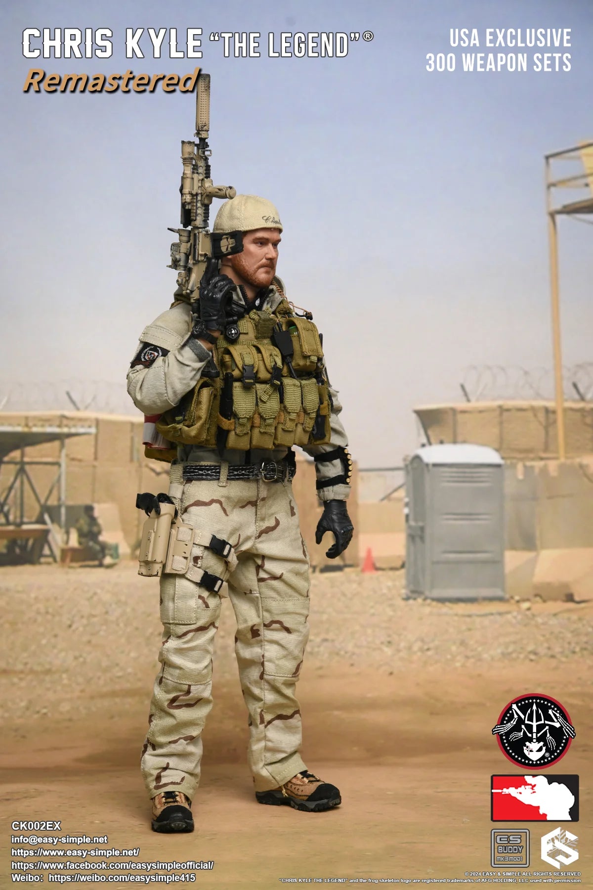 For sale is a brand new 1:6 scale Chris Kyle "The Legend" Remastered Exclusive Weapon Set by Easy & Simple (CK002EX). This is a highly detailed and collectible 12" tall action figure like G.I. Joe, Dragon, BBI, Hot Toys, Soldier Story, Crazy Dummy, and DAM Toys in excellent new in box / never removed from box condition.