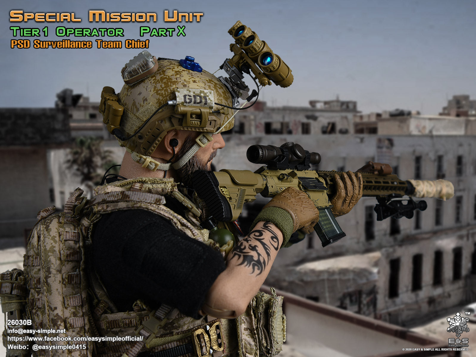 For sale is brand new 1:6 scale "Special Mission Unit Tier 1 Operator Part X PSD Surveillance Team Chief" 12" boxed action figure set from Easy & Simple (26030B) for 12" tall action figures like G.I. Joe, Dragon, BBI, Hot Toys, Soldier Story, Crazy Dummy, and DAM Toys in excellent new condition.