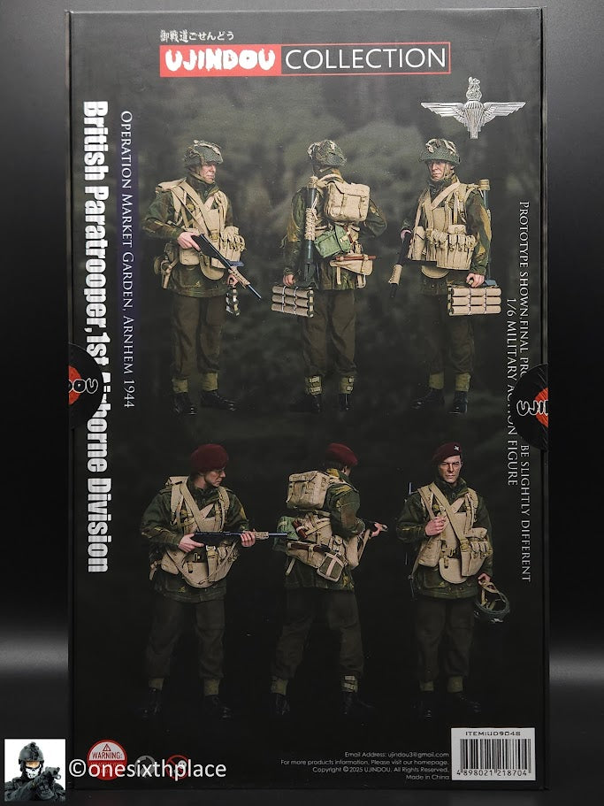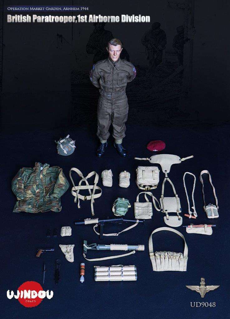 For sale is a new-in-box 1:6 scale "WWII British Paratrooper 1st Airborne Division Operation Market Garden, Arnhem 1944" 12" action figure set from Ujindou (UD-9048) for 12" tall action figures like G.I. Joe, Dragon, BBI, Hot Toys, Soldier Story, Crazy Dummy, and DAM Toys in excellent never-removed-from-box condition.